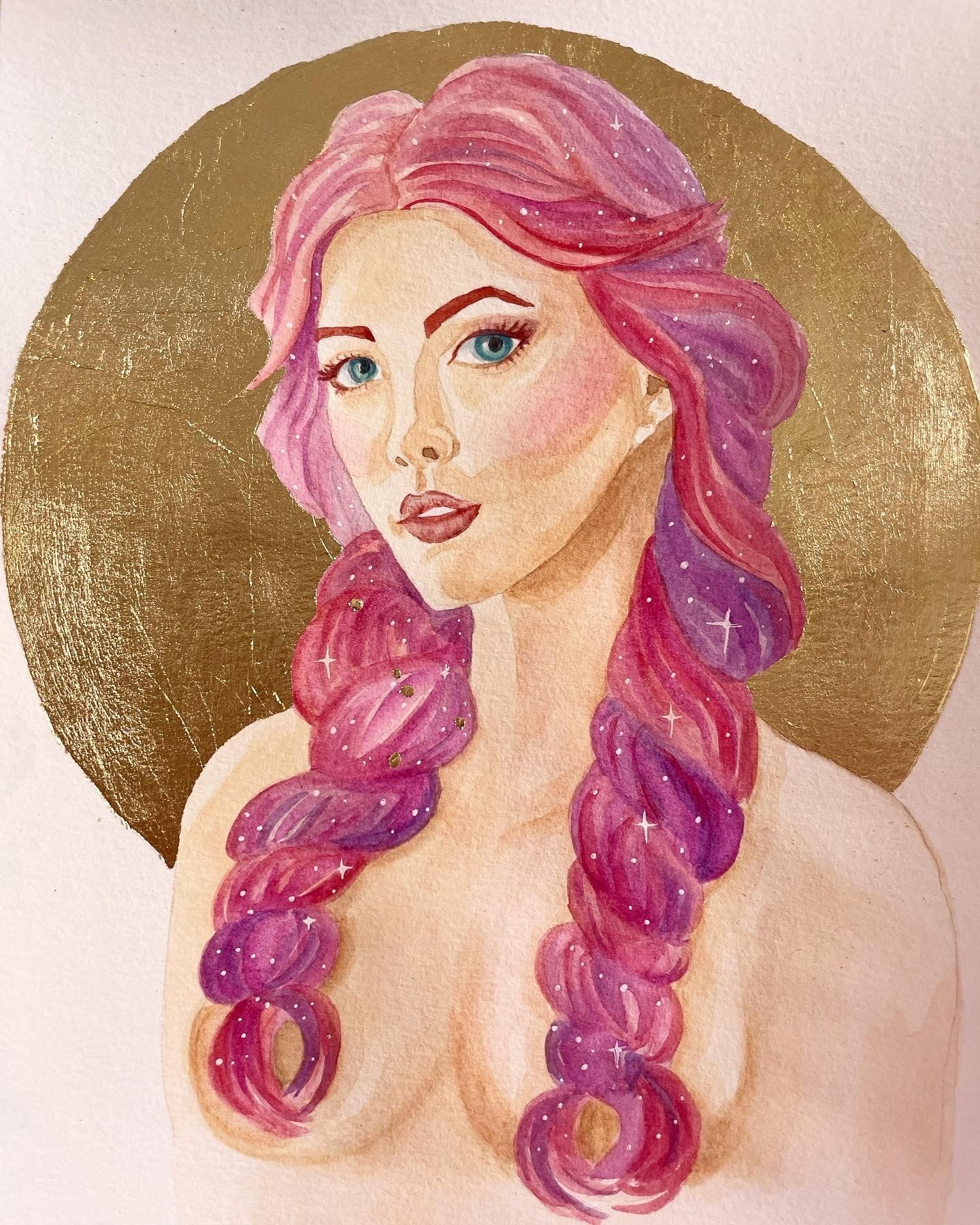 Watercolor and gold leaves on paper 21 x 29.7 cmWithout frameFrom sketch to final painting
