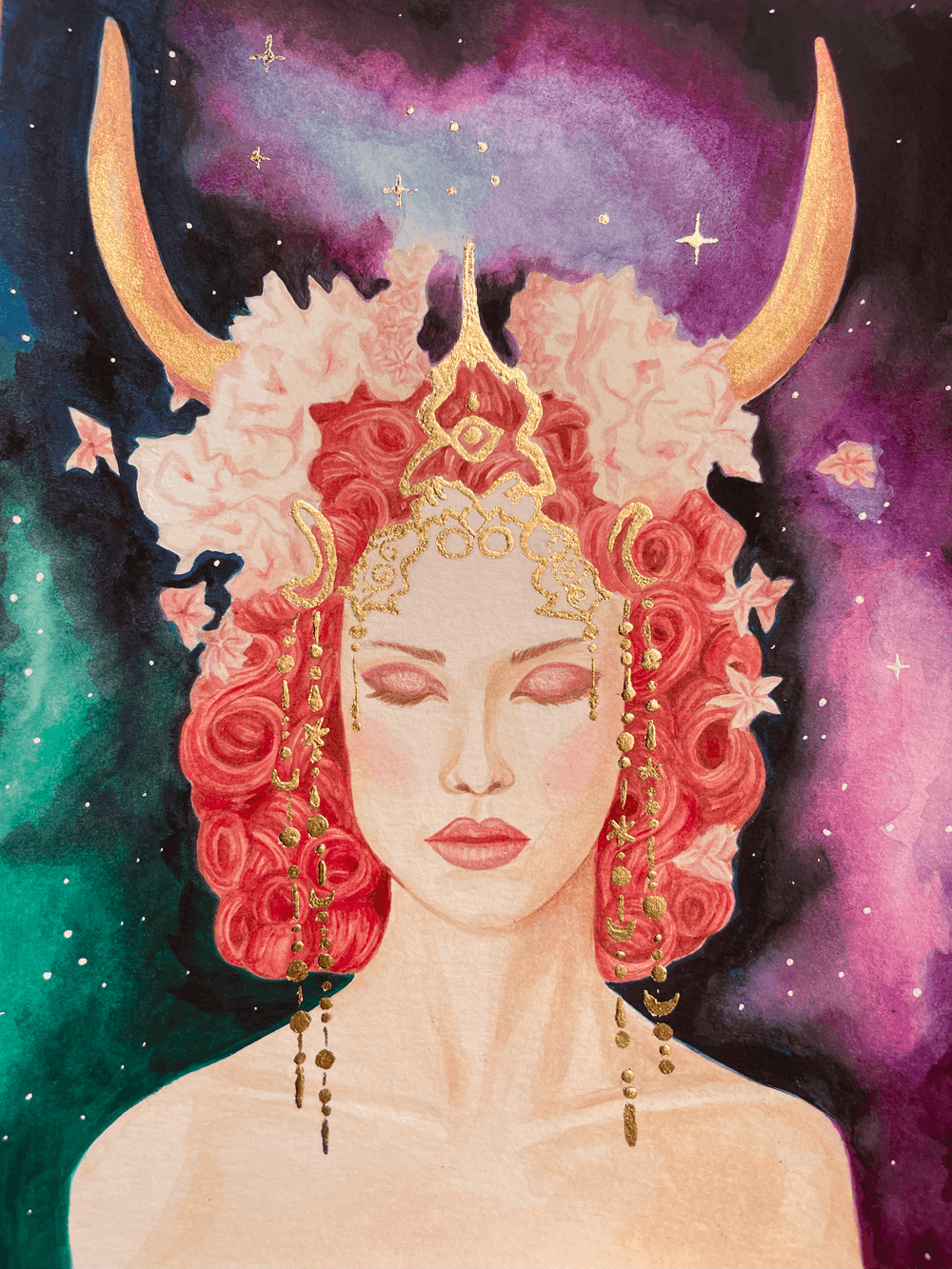 From sketch to final paintingWatercolor and gold leaves on paper 21 x 29.7 cmWithout frame