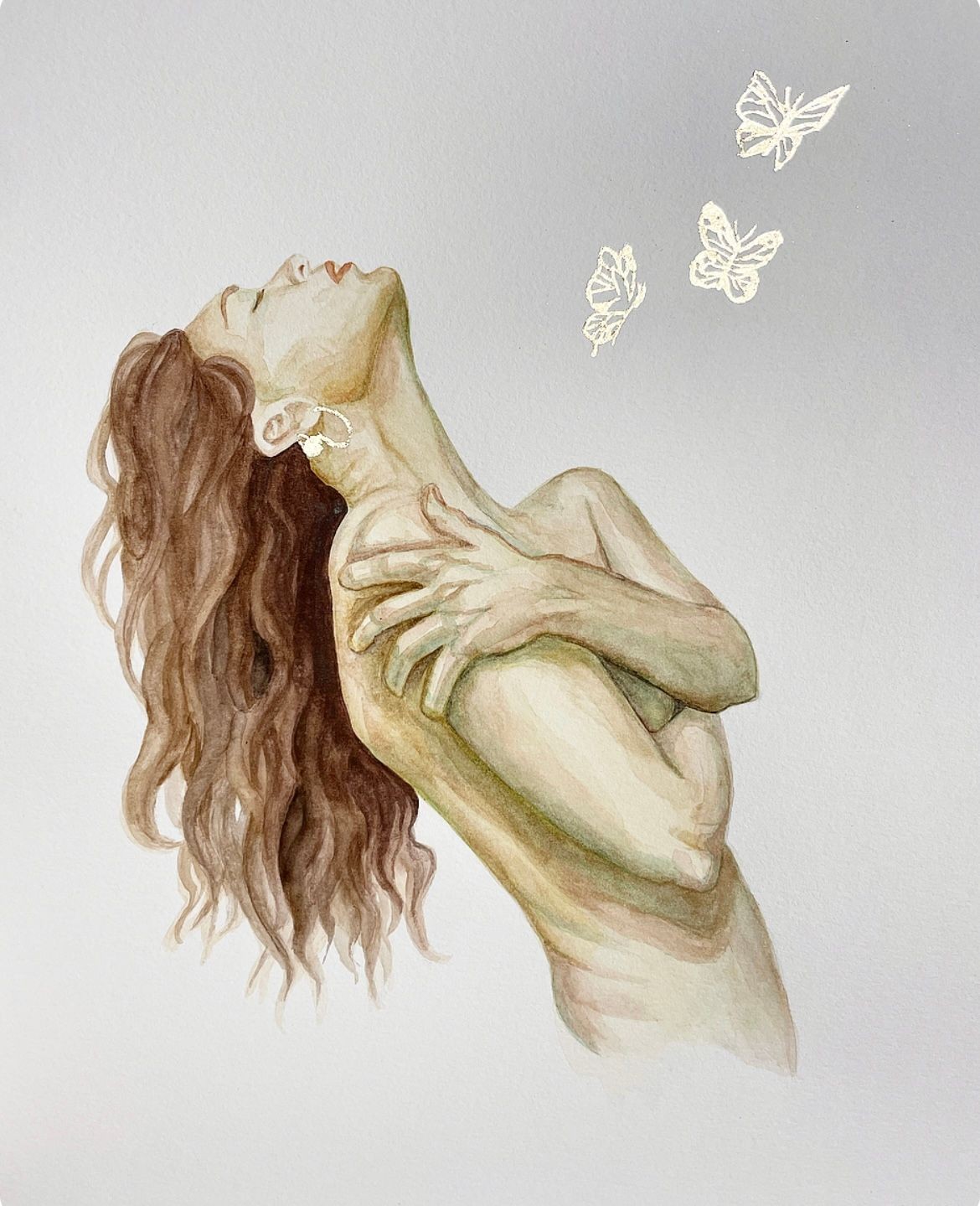 Watercolor & gold leaves on paper