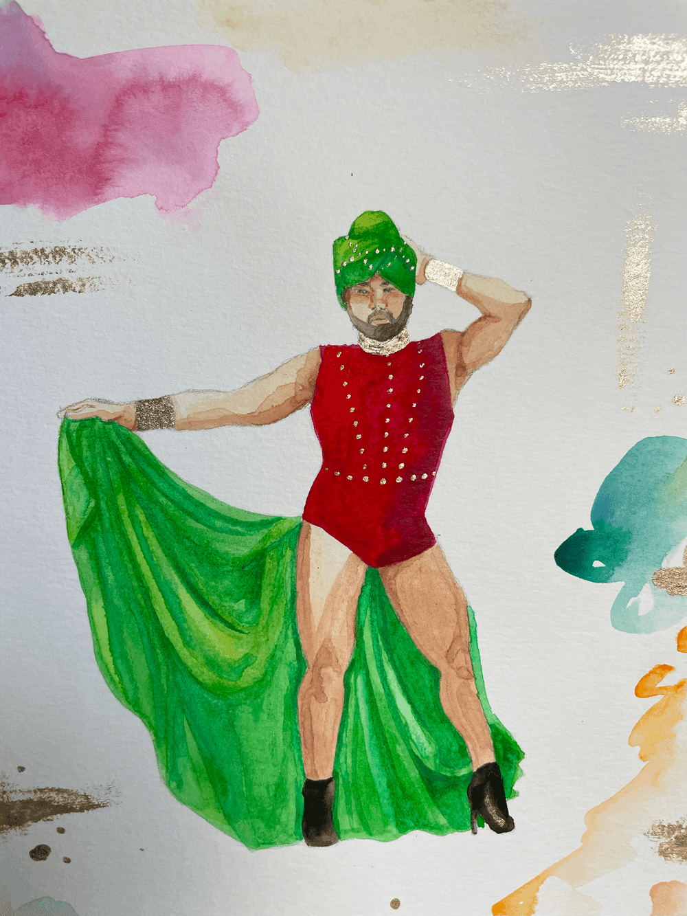 Watercolor and gold leaves on paper 21 x 29.7 cmWithout frame